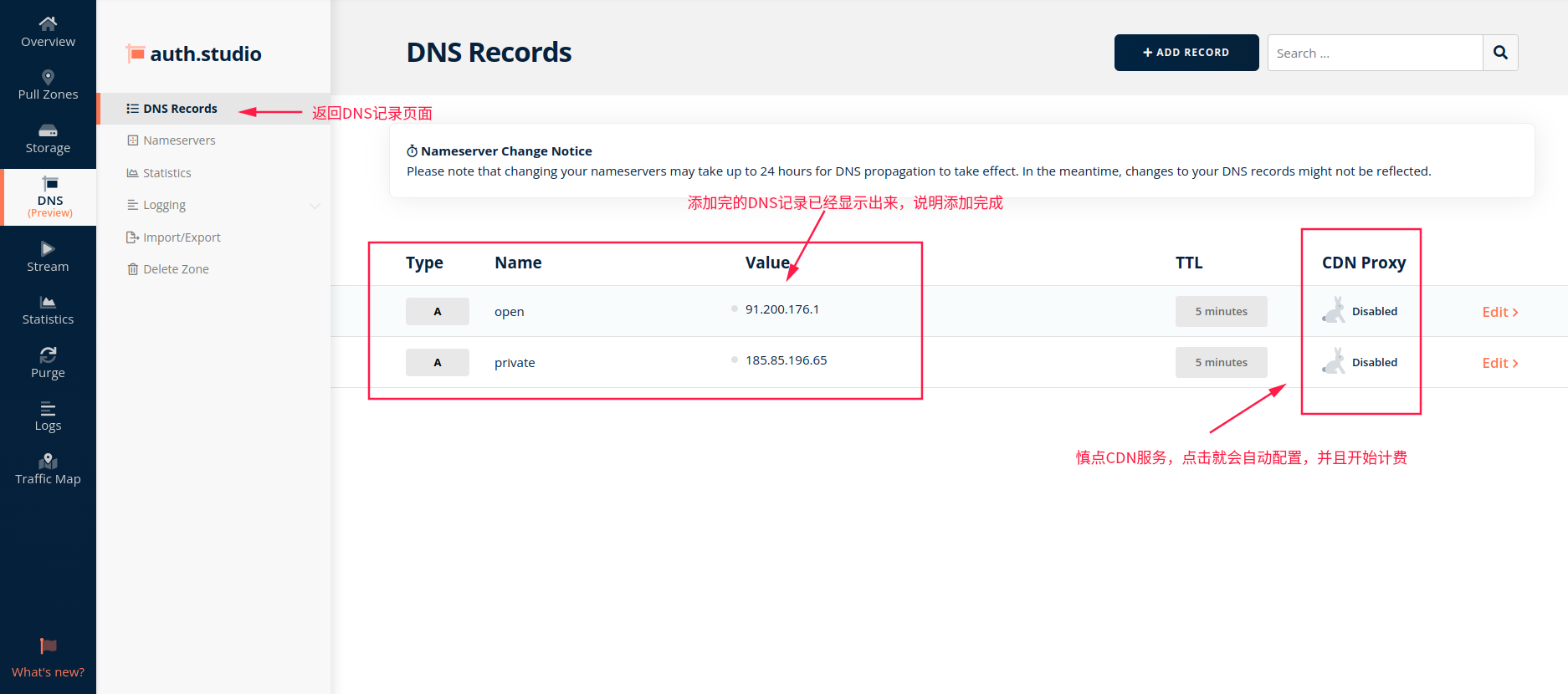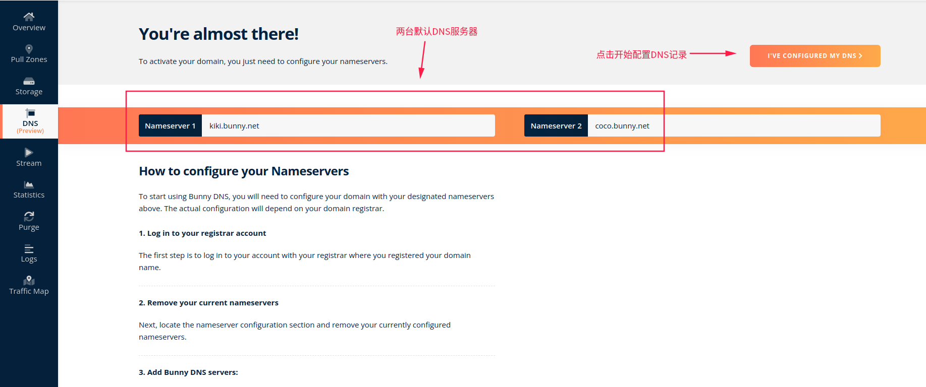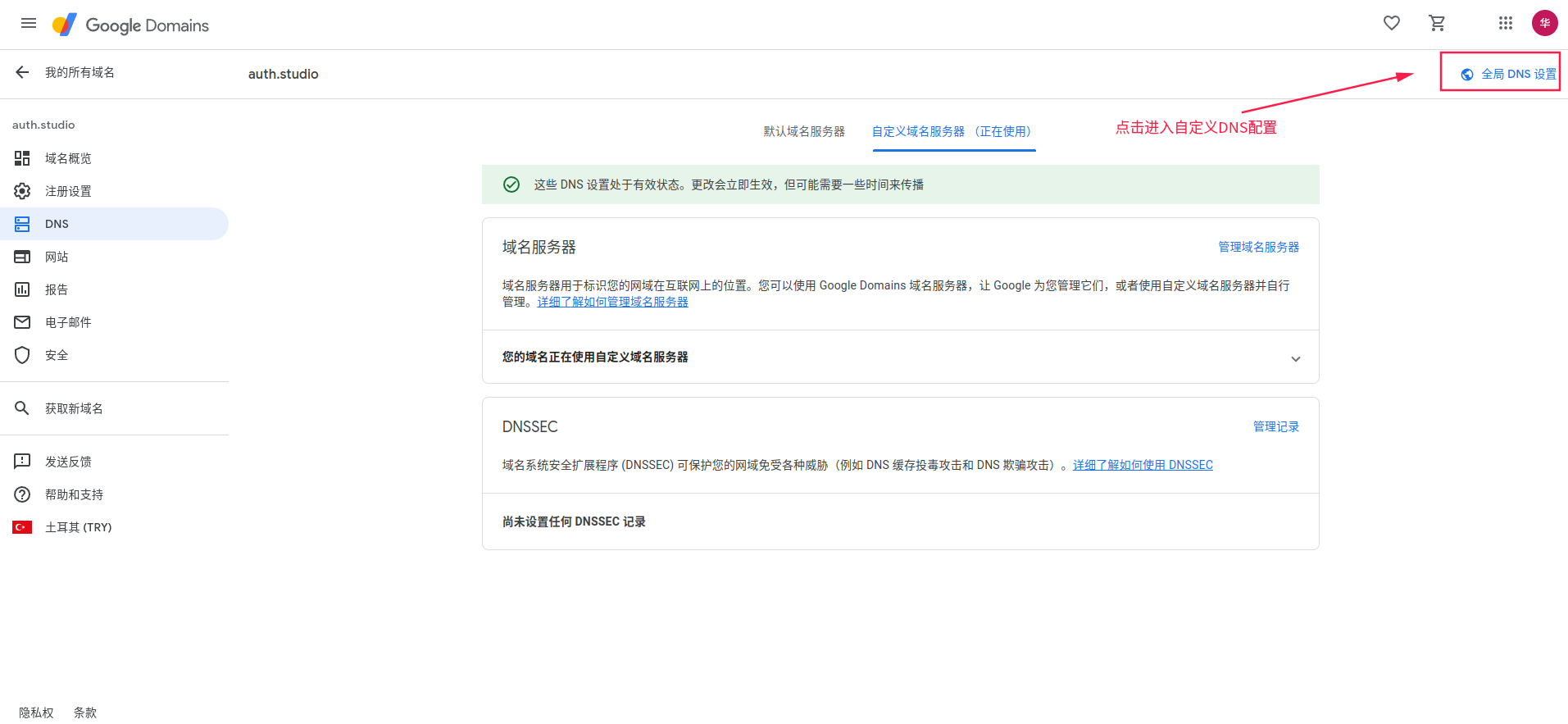 至此,BUNNY.NET这边的DNS配置基本完成,接下来就是去域名注册商添加自定义DNS服务器设置,大部分人这部分都应该会添加,不会的接着往下看,或者搜索引擎找教程。我的域名在Google注册,就以Google Domains后台为例。