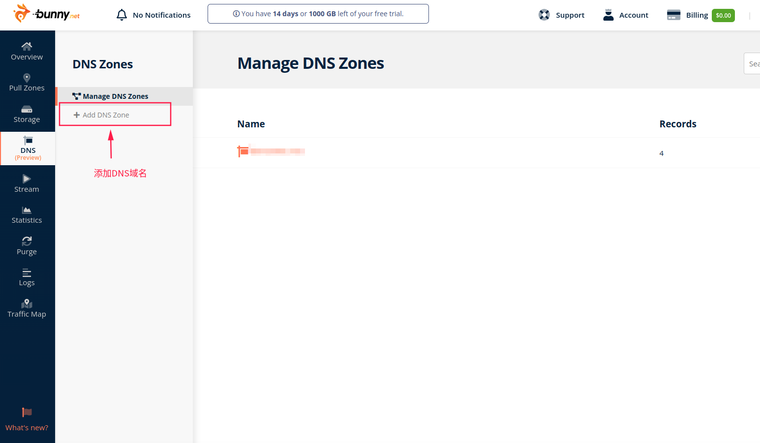 bunny.net 始于 2014 年,总部位于欧洲,提供CDN,云存储,DNS等互联网基础服务。新注册用户提供14天免费试用服务,无需绑定支付方式,注册即用。但是相应的,他们提供的服务大部分是收费,我们今天主要讲到的DNS每个月提供2000万普通请求,100万智能请求服务,超过免费额度后,付费使用,普通请求0.1$/一百万个,智能请求0.3$/一百万个。价格不算贵,但是结算最低消费是1美元。所以只要超过免费额度,计费结算就是从1美元开始。不过正常个人网站使用,免费额度应该完全足够。如果害怕被超额计费的,可以自己思量是否折腾。