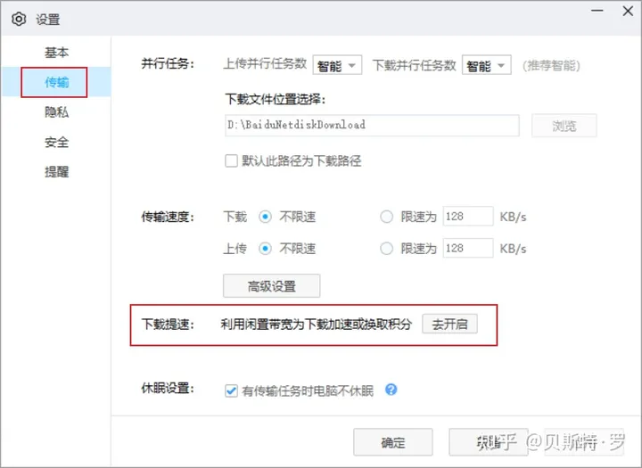 选择「 传输 」,然后开启「 下载提速 」。