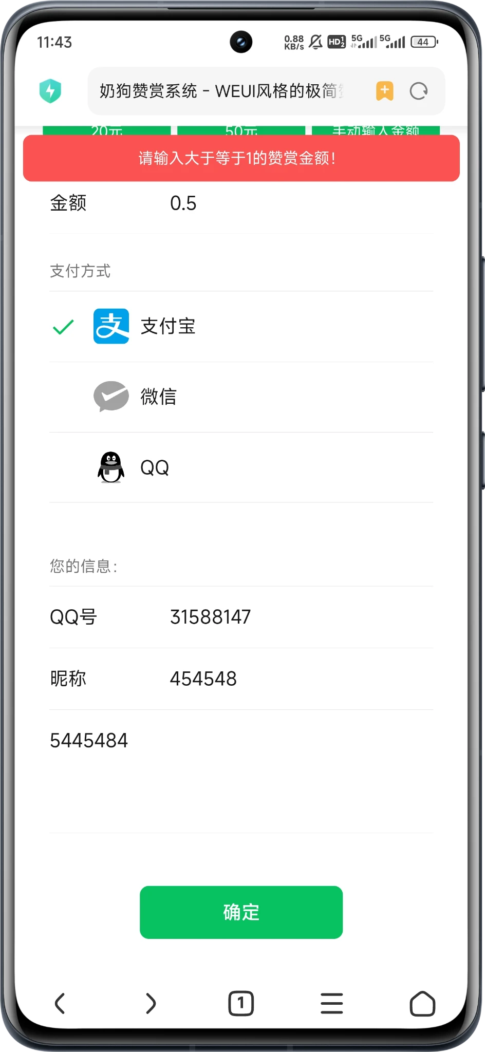 我也拿奶狗赞赏做了个网上要饭页