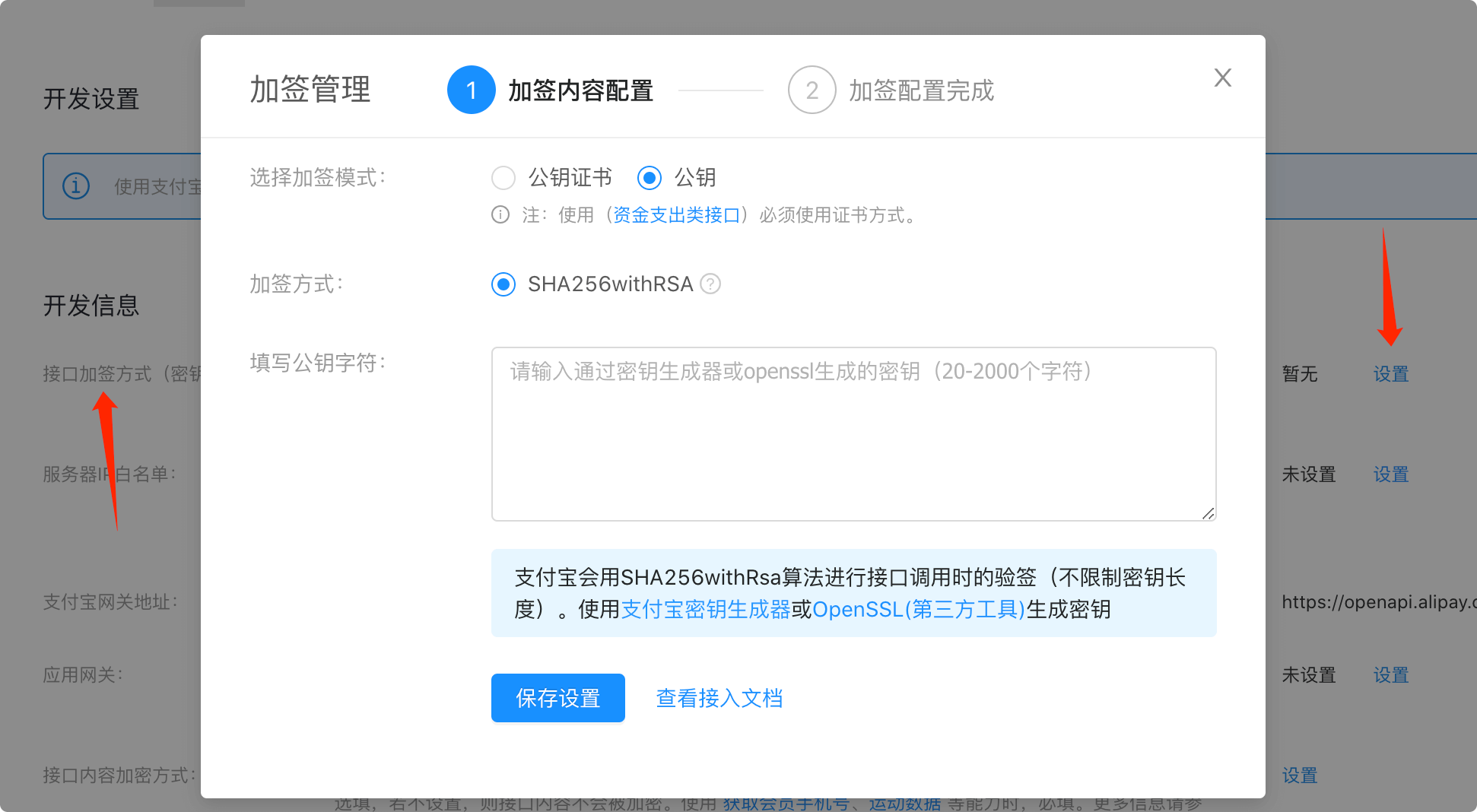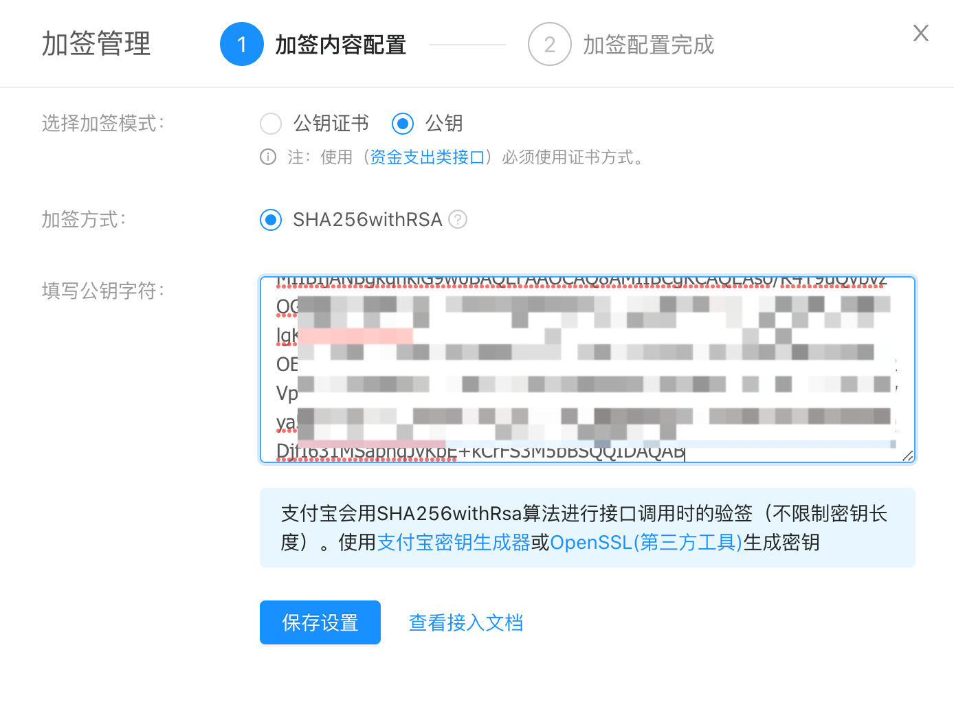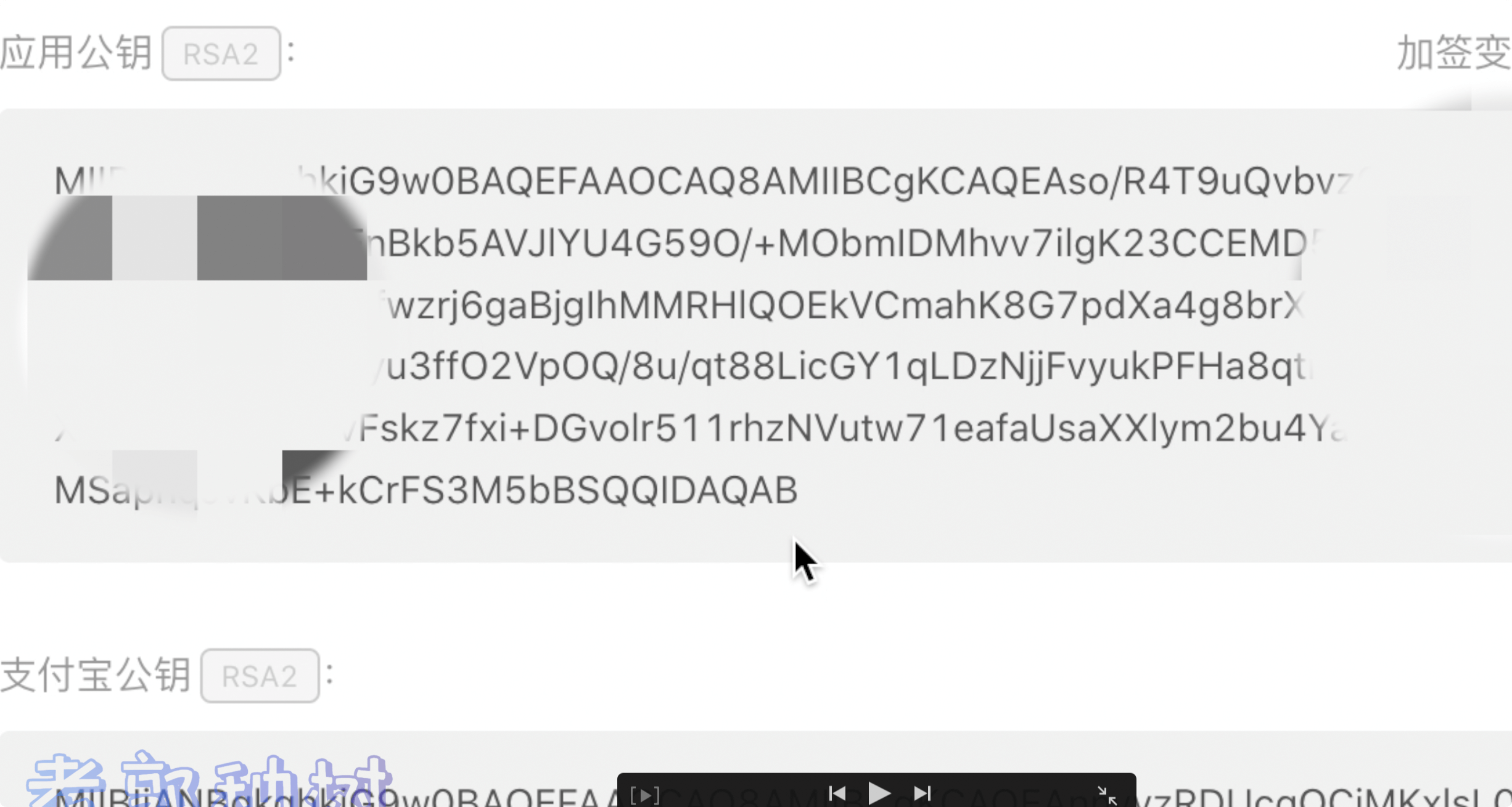 点击上面的保存设置,支付宝会给我们生成如下字符,应用公钥和支付宝公钥。。
